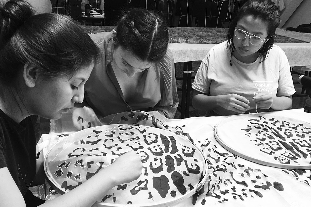 Durante el taller que impartieron, nuestros estudiantes pudieron aprender de la mano de los creadores, cómo se lleva a cabo el desarrollo de una colección, aprendieron nuevas técnicas, y pudieron crear ellos mismos algunas piezas de la colección.